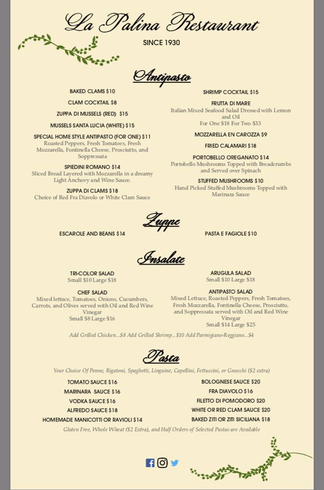Welcome to La Palina Restaurant, a hidden gem located at 159 Avenue O in Brooklyn, NY. Specializing in delightful pizzas, the menu offers a renowned selection of fresh, vibrant salads and classic antipasti. Each bite of the TriColor Salad captivates with mixed greens and vegetables, while the Antipasto Salad elevates your palate with a symphony of flavors, including roasted peppers and sopressata.